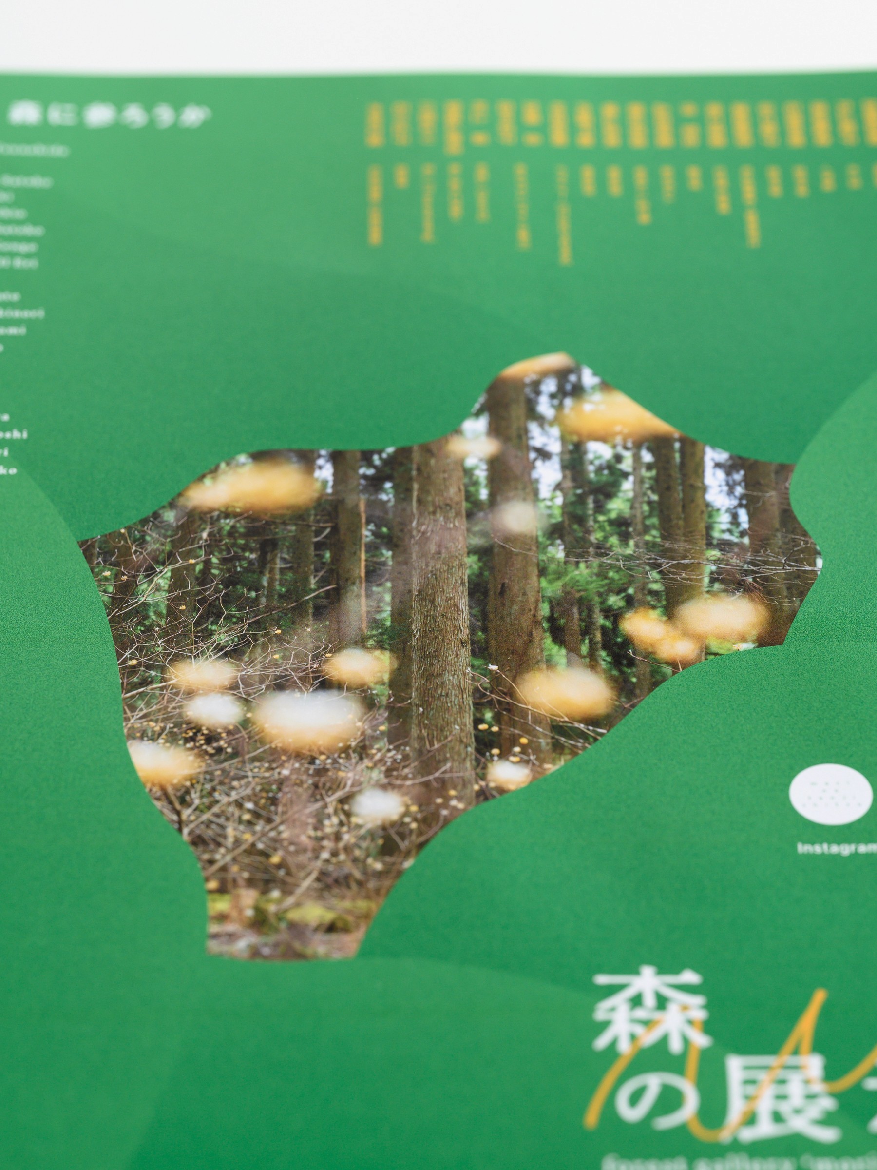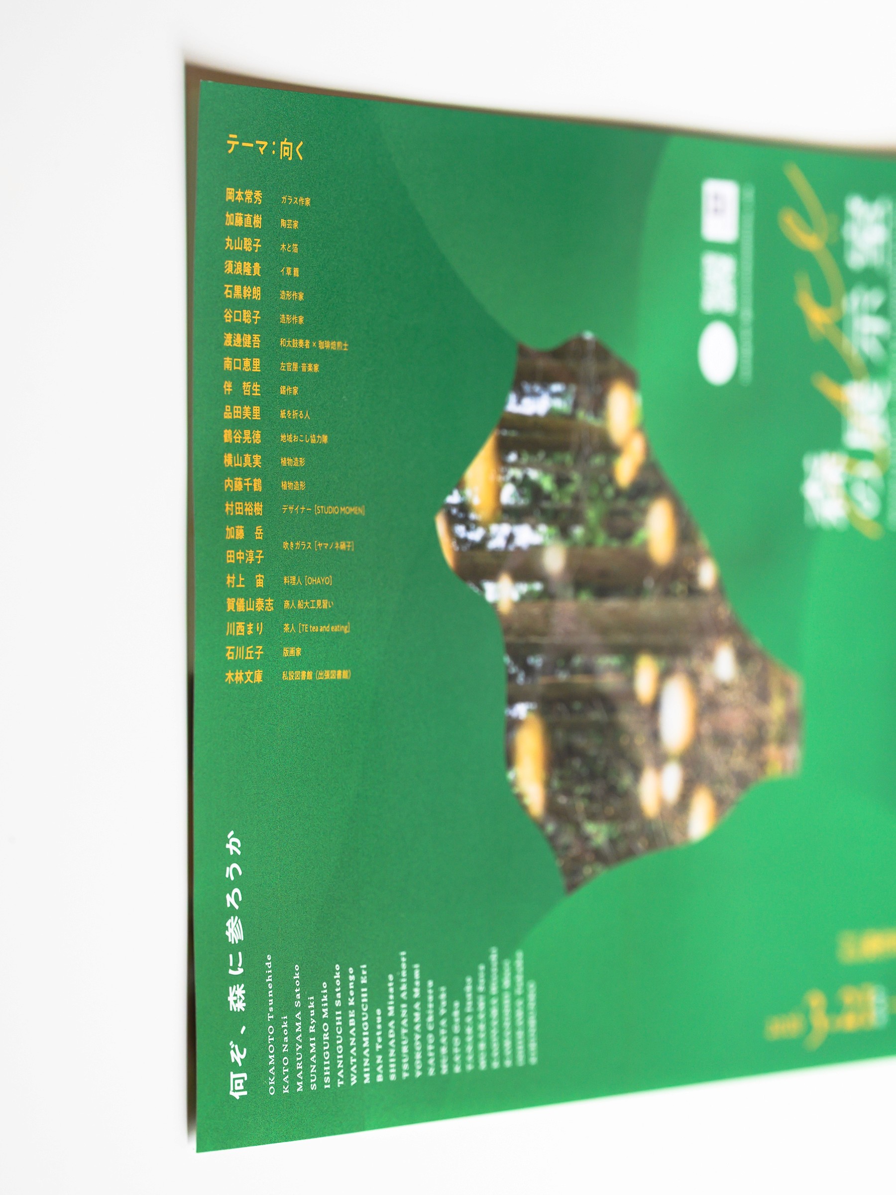 また、開催期間前後の右手では、特産である三椏(ミツマタ)の花がちょうど見頃を迎えます。メインビジュアルの写真は、昨春に撮影に訪れた際、森をかき分けて行った先に見つけた辺り一面の三椏の花。初めて目にする光景で感動的だったので、そのままビジュアル化しました。